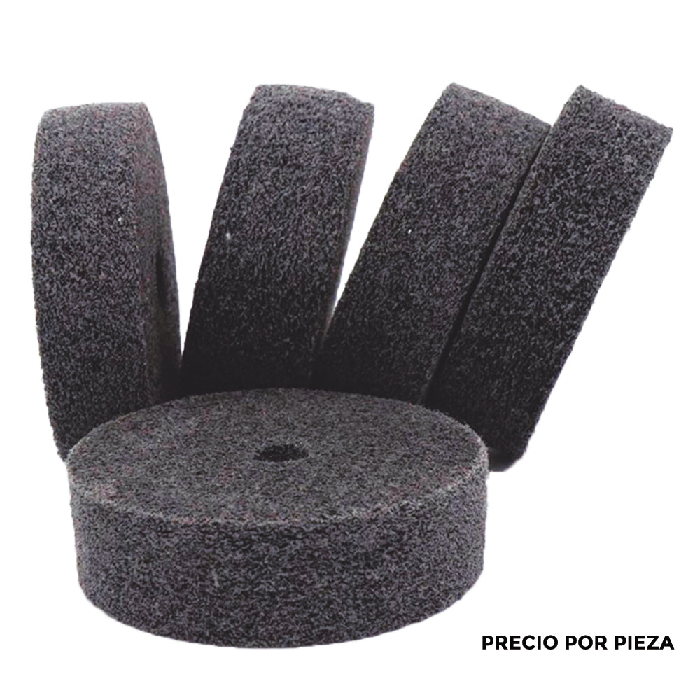 Estas ruedas no se calientan, se utilizan para eliminar rápidamente marcas, arañazos, defectos superficiales, oxido, satinar, asentar y desbastar. También es ideal para producir un acabado satinado duradero. Hecho de una variedad de malla de nylon recubierta con abrasivo de carburo de silicio.